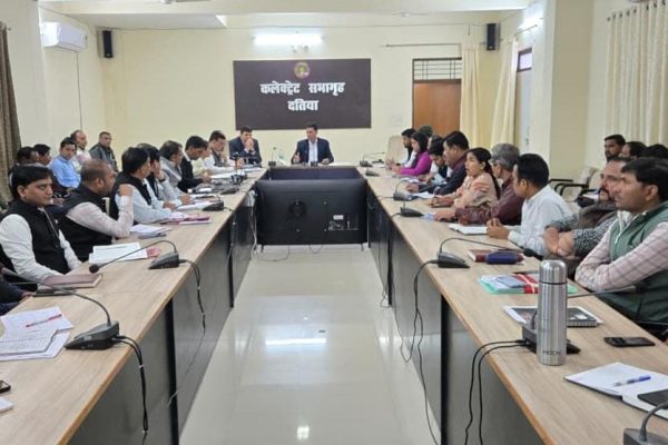 दतिया। दतिया कलेक्टर स्वप्निल वानखडे की अध्यक्षता में प्रत्येक सोमवार आयोजित होने वाली समय-सीमा बैठक सोमवार कलेक्ट्रेट सभागार में संपन्न हुई। बैठक में सीएम हेल्पलाइन के लंबित प्रकरणों एवं अंतरविभागीय मामलों की विभागवार समीक्षा की गई।कलेक्टर श्री वानखडे ने सीएम हेल्पलाइन द्वितीय समूह में जिलों को लगातार प्रथम स्थान प्राप्त करने पर समस्त जिला अधिकारियों…