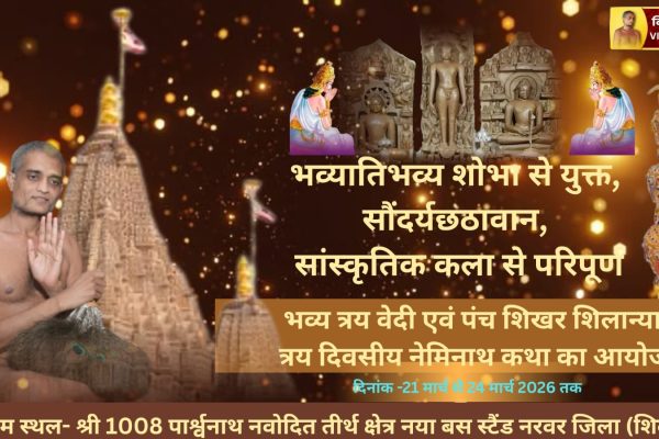 परम् पूज्य राष्ट्रसंत सिद्धचक्र आराधक जिन मंदिर जीर्णोद्वारक संत प्रशांत मूर्ति श्रमण मुनि श्री 108 विनय सागर जी महामुनिराज के मंगल सानिध्य में 21 मार्च से 24 मार्च 2026 को मध्यप्रदेश का एक मात्र 744 वर्ष प्राचीन लघुगिरनार की पावन वसुंधरा पर त्रय वेदी शिलान्यास पंच शिखर शिलान्यास एवं त्रय दिवसीय नेमीनाथ कथा का आयोजन…