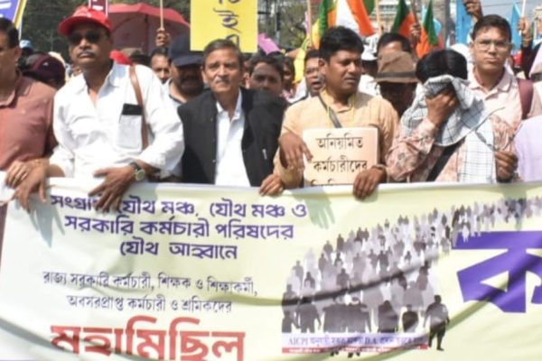 पश्चिम बंगाल सरकार में वहां के राज्य कर्मचारी और शिक्षकों को पूरे देश के सभी प्रदेशों से सबसे कम मात्र 18 परसेंट DA दिया जा रहा है वेतन आयोग भी अभी छठवां ही दिया जा रहा हैl कोलकाता के सबसे व्यस्ततम धर्मतला पर हजारों की संख्या में कर्मचारी और शिक्षकों ने वहां रैली निकाल कर…