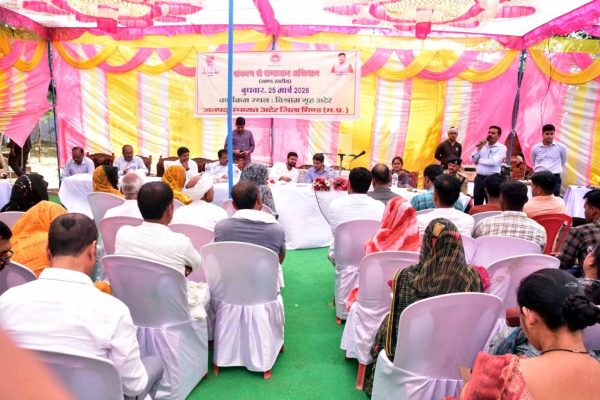 भिण्ड 25 मार्च 2026/ संकल्प से समाधान अभियान के तहत आज विश्रामगृह अटेर में खण्ड स्तरीय शिविर का आयोजन किया गया। इस कार्यक्रम में अटेर विधायक श्री हेमन्त कटारे, कलेक्टर भिण्ड, मुख्य कार्यपालन अधिकारी जिला पंचायत भिण्ड, अनुविभागीय अधिकारी (राजस्व) अटेर सहित विभिन्न विभागों के जिला व खण्ड स्तरीय अधिकारी तथा जनप्रतिनिधि उपस्थित रहे। शिविर…