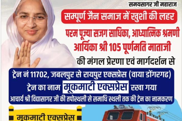 “मूकमाटी एक्सप्रेस” के नाम से जानी जाएगी जबलपुर रायपुर एक्सप्रेस, सांसद नवीन जैन के प्रयासों से जैन समाज में खुशी की लहर