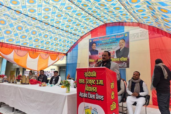 भिण्ड 08 जनवरी 2026/ नवीन एवं नवकरणीय ऊर्जा मंत्री श्री राकेश शुक्ला के मुख्य आतिथ्य में सांदीपनि शासकीय उत्कृष्ट उ.मा. विद्यालय मेहगांव के छात्रों को निःशुल्क साईकिल वितरण एवं मेधावी छात्रों का सम्मान कार्यक्रम आयोजित किया गया। कार्यक्रम का शुभारंभ मां सरस्वती जी की प्रतिमा पर माल्यार्पण एवं दीप प्रज्वलित कर किया गया। इस दौरान…