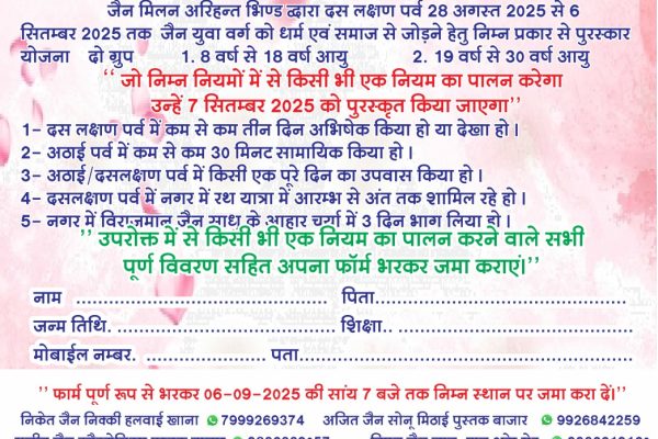 उत्तम संयम धर्म – मनोबल को बढ़ाने की अचूक औषधि संयम है। संयम धर्म के द्वारा साधक अनियंत्रित इन्द्रिय और मन पर नियंत्रण रखता है। षट्काय के जीवों की रक्षा करता है। उत्तम संयम धर्म मनुष्य को सामाजिक, नैतिक, धार्मिक एवं जिम्मेदार बनाता है। उत्तम संयम धर्म – संयम का अर्थ है संतुलन। संयम का…