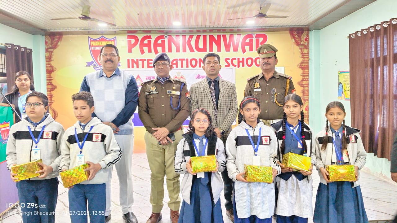 इटावा-यातायात माह के अंतर्गत पान कुंवर इंटरनेशनल स्कूल में एक महत्वपूर्ण यातायात एवं साइबर क्राइम पाठशाला का आयोजन किया गया। इस कार्यक्रम के मुख्य अतिथि एसपी सिटी अभय नाथ त्रिपाठी रहे, जिनका विद्यालय प्रबंधन ने भव्य स्वागत किया।कार्यक्रम की शुरुआत मुख्य अतिथि और विद्यालय प्रबंधन द्वारा सरस्वती माता की प्रतिमा पर दीप प्रज्वलित कर माल्यार्पण के साथ हुई। इसके उपरांत, सरस्वती वंदना प्रस्तुत की गई, जिसने कार्यक्रम को औपचारिक रूप से आगे बढ़ाया।कार्यक्रम के दौरान एसपी सिटी अभय नाथ त्रिपाठी ने बच्चों को यातायात नियमों के पालन के संबंध में विस्तृत जानकारी दी और उन्हें जागरूक किया। उन्होंने इस बात पर जोर दिया कि बच्चे अपने घर के सदस्यों को प्रेरित करें कि वे वाहन चलाते समय हमेशा हेलमेट और सीट बेल्ट का प्रयोग करें, क्योंकि यह उनकी सुरक्षा का मुख्य बिंदु है।