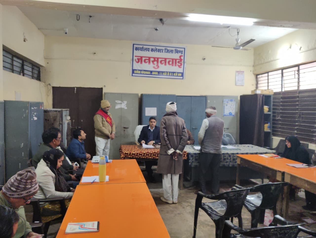 भिण्ड 30 दिसम्बर 2025/ मंगलवार को कलेक्ट्रेट में आयोजित हुई जनसुनवाई में कलेक्टर भिण्ड ने जिले के विभिन्न अंचलों से अपनी समस्याओं का आवेदन लेकर आये 62 आवेदकों की समस्याएं सुनी और उनके निराकरण करने के संबंध में अधिकारियों को दिशा-निर्देश दिए। इस मौके पर सीईओ जिला पंचायत भिण्ड एवं अपर कलेक्टर द्वारा भी आवेदकों की समस्याओं पर जनसुनवाई की गई।