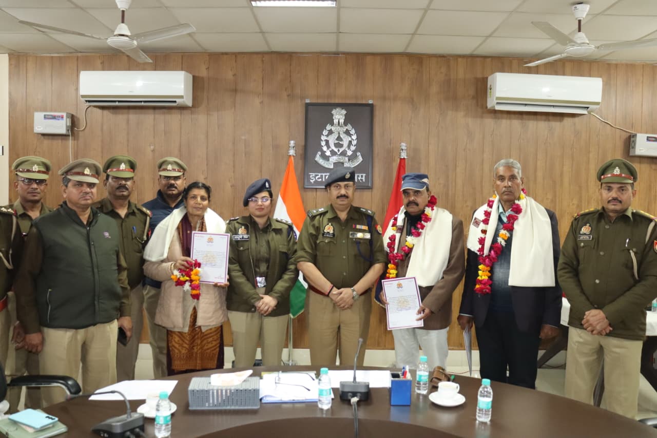 इटावा- पुलिस विभाग मे सेवा देकर अपनी अधिवर्षता आयु पूर्ण कर सेवानिवृत्त हुए रेडियो उपनिरीक्षक राजीव कुमार, रेडियो लीडिंग फायरमैन शिवराज सिंह, म0मु0आ0 श्रीमती मालती देवी को वरिष्ठ पुलिस अधीक्षक बृजेश कुमार श्रीवास्तव द्वारा स्मृति चिन्ह, घड़ी, प्रशस्ति पत्र व शॉल भेंट कर भावभीनी विदाई देकर उज्ज्वल भविष्य की कामना की गई एवं भविष्य मे किसी भी प्रकार की कोई सहायता होने पर नि:संकोच संपर्क करने के लिये आश्वस्त किया गया ।