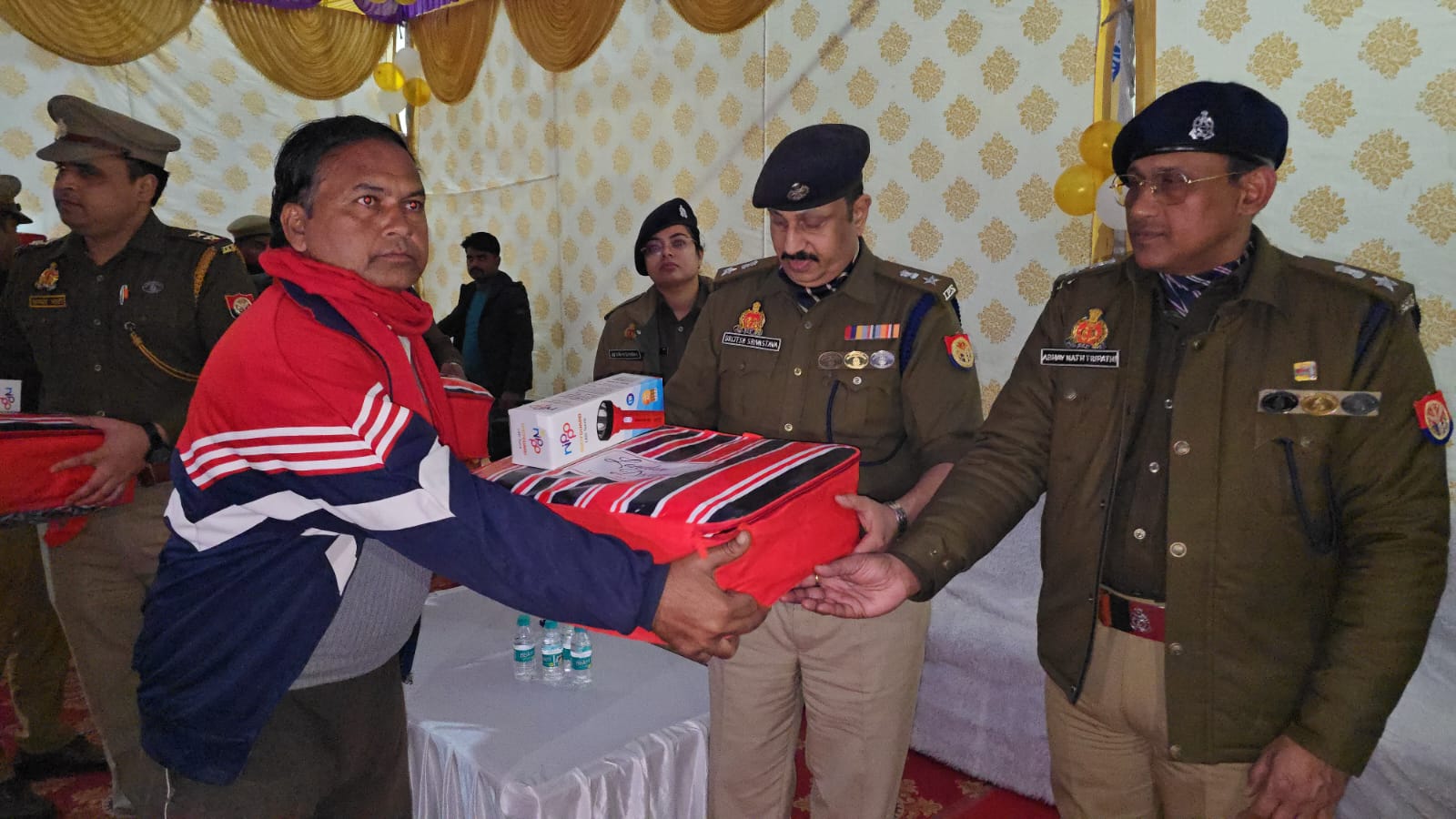 नववर्ष पर जसंवतनगर मे एसएसपी ने चौकीदारों को बांटे कंबल व टॉर्च