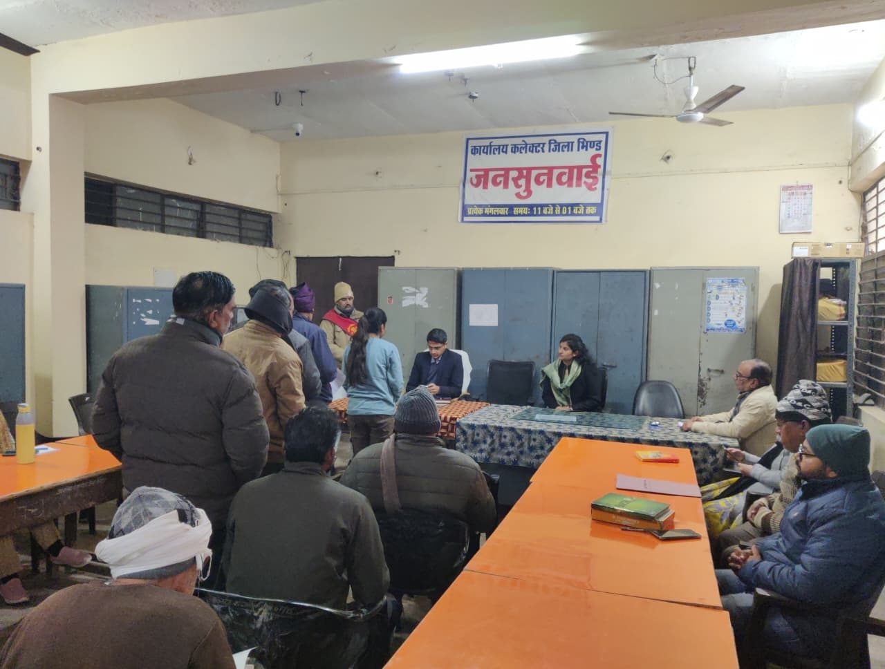 भिण्ड 06 जनवरी 2026/ मंगलवार को कलेक्ट्रेट में आयोजित हुई जनसुनवाई में कलेक्टर भिण्ड ने जिले के विभिन्न अंचलों से अपनी समस्याओं का आवेदन लेकर आये 93 आवेदकों की समस्याएं सुनी और उनके निराकरण करने के संबंध में अधिकारियों को दिशा-निर्देश दिए। इस मौके पर डिप्टी कलेक्टर द्वारा भी आवेदकों की समस्याओं पर जनसुनवाई की गई।