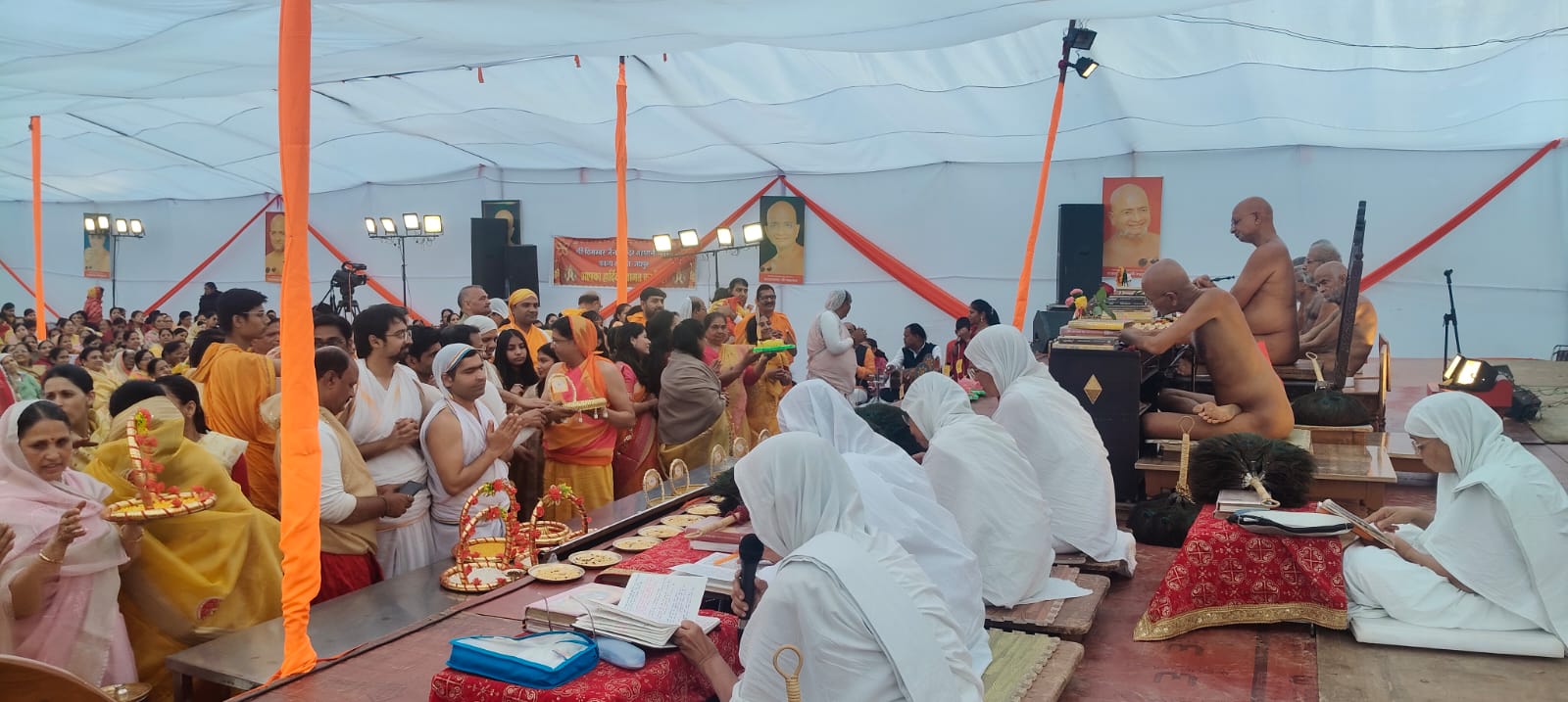 जयपुर। परम पूज्य भारत गौरव, साधनामहोदधि अन्तर्मना प्रसन्न सागर जी महाराज के सानिध्य में बसंत पंचमी एवं आचार्य श्रीकुन्द कुन्द स्वामी के जन्म जयंती के पावन अवसर पर प्रातः 4:00 बजे सहस्त्रनाम पूजा सम्मेद शिखर टॉक पूजा, पूर्व- वर्तमान परंपरा आचार्यो के अर्घ्य एवं पूजा की गयी, तत्पश्चात आचार्य श्री का पाद् प्रक्षालन सुनील लता सोगानी परिवार द्वारा किया गया। अखिल भारतवर्षीय दिगंबर जैन युवा परिषद के राष्ट्रीय महामंत्री उदयभान जैन ने अवगत कराया कि दोपहर को स्वाध्याय सभा, गुरु पूजा सारसमल, पदम भावना झांझरी,यागेश कासलीवाल, सूर्य प्रकाश छाबडा की ओर से भक्ति के साथ की गयी। मंदिर प्रबंध समिति के अध्यक्ष कैलाश छाबड़ा,मंत्री राजेश वोहरा, उपाध्यक्ष अरुण शाह के विशेष निवेदन पर परम पूज्य साधना महोदधि आचार्य श्री प्रसन्न सागर जी महाराज के बसंत पंचमी के पावन अवसर पर समाज के प्रत्येक मुखिया द्वारा श्री चरणों के पाद् प्रक्षालन किये। आचार्य श्री ने प्रत्येक सदस्य को आशीर्वाद प्रदान किया। धर्म सभा को उपाध्यक्ष श्री पीयूष सागर जी महाराज उपाध्याय श्री पियूष सागर जी महाराज 25 जनवरी से वीटी रोड पर होने वाले चारित्र शुद्धी विधान की उपयोगिता पर प्रकाश डाला । परम पूज्य प्रवर्तक मुनि श्री सहज सागर जी महाराज ने कहा कि छोटे छोटे नियम लेकर मानव जीवन को सार्थक करते हुए पुण्य अर्जन करना चाहिए, मुनि श्री ने कहा कि आचार्य श्री का आह्वान अच्छे स्वास्थ्य के लिए एक मास में एक उपवास प्रत्येक व्यक्ति को करना है इस मिशन को जन जन तक पालना करवाना है। सांय 7बजे से आनन्द यात्रा व महाआरती हुई.। गुरू भक्त विपुल छाबडा ने बताया कि आचार्य श्री को प्रवास हेतु झोंटवाडा, वैशाली नगर, श्याम नगर, मीरा मार्ग आदि कालोनियों की जैन समाज ने श्री फल चढाया।
