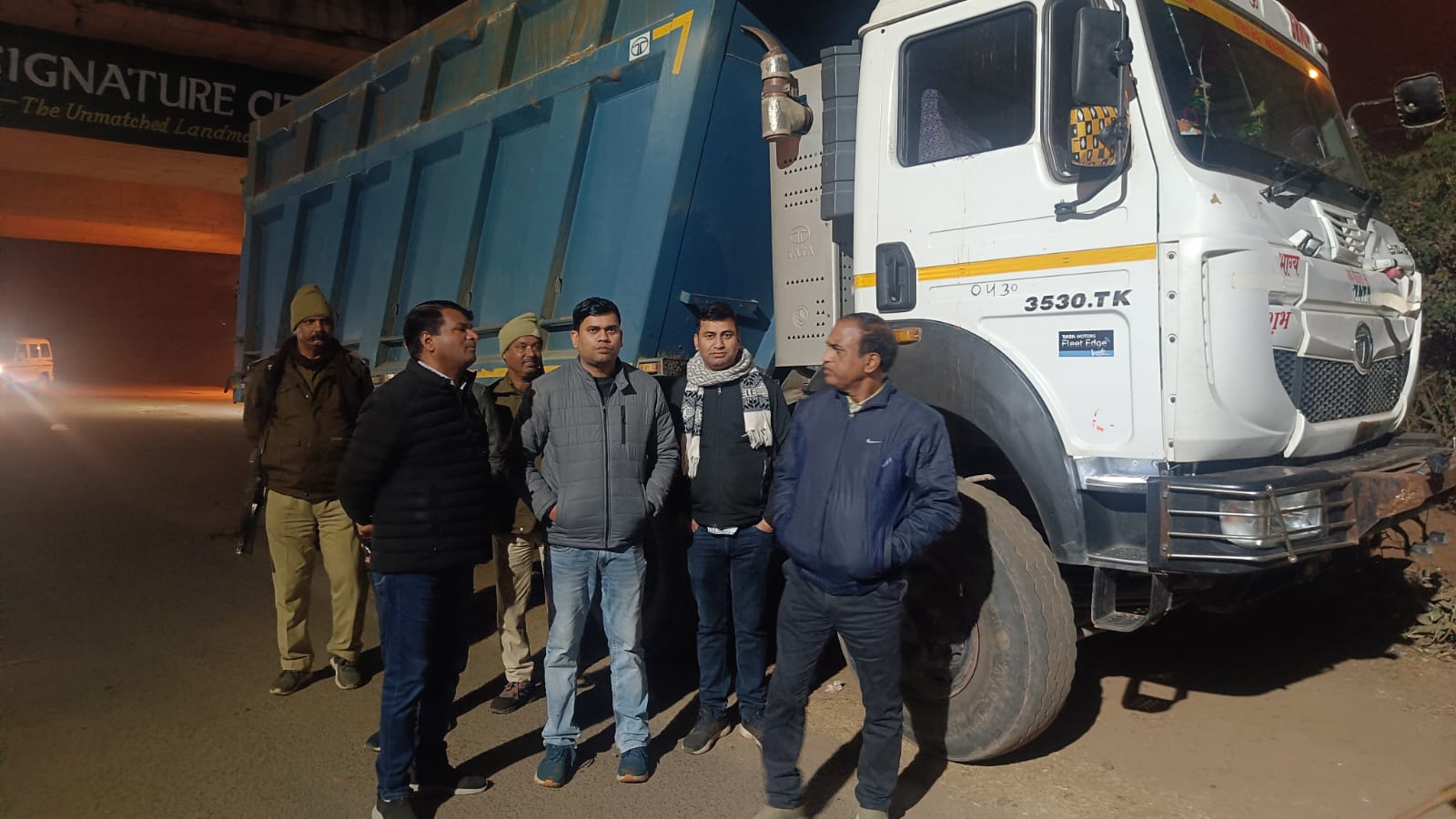 अवैध रेत परिवहन के खिलाफ रात में की गई छापामार कार्रवाई, बेहट रोड से डंपर जब्त