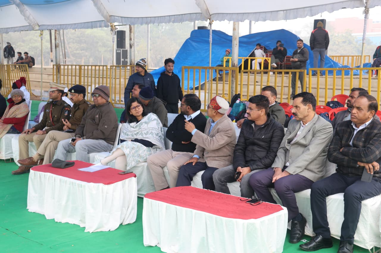 संयुक्त परेड एवं सांस्कृतिक कार्यक्रमों की फायनल व फुल ड्रेस रिहर्सल शनिवार 24 जनवरी को प्रात: 9 बजे एसएएफ मैदान पर की गई। कलेक्टर श्रीमती रुचिका चौहान ने एसएएफ मैदान पर पहुँचकर गणतंत्र दिवस की तैयारियों का जायजा लिया। साथ ही सांस्कृतिक कार्यक्रमों की फुल ड्रेस फायनल रिहर्सल भी देखी। इस अवसर पर जिला पंचायत के मुख्य कार्यपालन अधिकारी श्री सोजान सिंह रावत व अपर जिला दण्डाधिकारी श्री सी बी प्रसाद सहित अन्य संबंधित अधिकारी मौजूद थे।