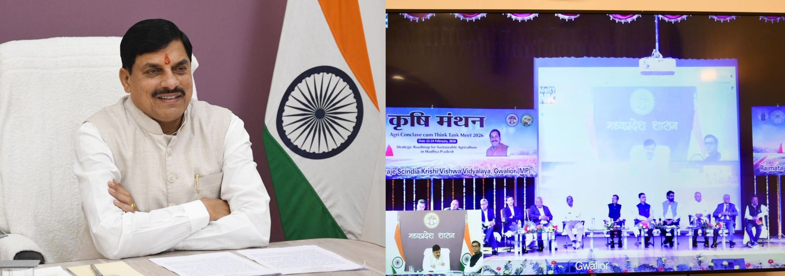 ग्वालियर 23 फरवरी 2026/ मुख्यमंत्री डॉ. मोहन यादव ने कहा है कि किसान हमारे प्रदेश की अर्थव्यवस्था के आधार स्तंभ हैं। किसानों के अथक परिश्रम से ही हमारे बाजार गुलजार है। हम वर्ष 2026 को किसान कल्याण वर्ष के रूप में मना रहे हैं। यह वर्ष प्रदेश के इतिहास में किसानों के हित और समग्र कल्याण के मामले में मील का पत्थर साबित होगा। उन्होंने कहा कि यह वर्ष ‘खेत से लेकर कारखाने तक और बाग से लेकर बाजार तक’ की पूरी मूल्य संवर्धन श्रृंखला को एक सूत्र में जोड़ेगा। इस वर्ष हम क़ृषि उत्पादों के प्रसंस्करण और इनमें वैल्यू एडिशन के लिए अधिकाधिक रोजगार आधारित उद्योगों के विकास, उन्नत किस्म के बीजोत्पादन, पशुपालन, दुग्धोत्पादन, मत्स्योत्पादन में वृद्धि सहित हर वो कदम उठाएंगे, जिनसे खेती और अन्नदाताओं का विकास हो। मुख्यमंत्री डॉ. यादव ने राजमाता विजयाराजे सिंधिया कृषि विश्वविद्यालय ग्वालियर में हो रहे ‘कृषि मंथन एवं कृषि प्रौद्योगिकी मेला 2026’ को सोमवार को भोपाल स्थित मुख्यमंत्री निवास से वीडियो कॉन्फ्रेंसिंग के जरिए संबोधित किया।
