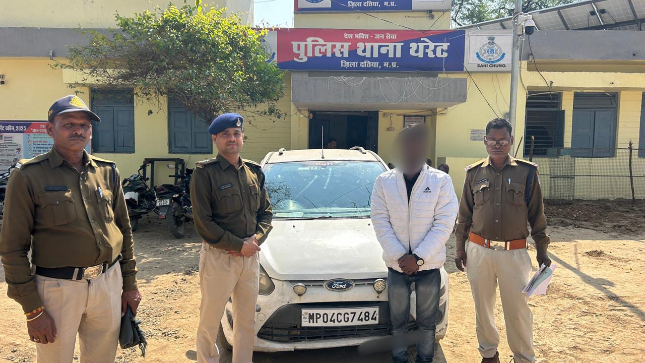 दतिया।पुलिस अधीक्षक सूरज वर्मा के निर्देशन एवं अतिरिक्त पुलिस अधीक्षक सुनील कुमार शिवहरे तथा एसडीओपी अजय चनाना की मार्गदर्शन में में होली त्यौहार को शांतिपूर्ण एवं सुरक्षित रूप से संपन्न कराने तथा शराब पीकर वाहन चलाने वालों के विरुद्ध प्रभावी कार्रवाई हेतु समस्त थाना प्रभारियों को निर्देशित किया गया है।उक्त निर्देशों के तारतम्य में थाना थरेट पुलिस द्वारा 28 फरवरी को रात्रि गश्त के दौरान चीना बंबा रोड पर एक फोर्ड फिगो कार क्रमांक MP 04CG 7484 को लहराते हुए चलाते पाया गया। पुलिस बल द्वारा तत्परता से घेराबंदी कर वाहन को रोका गया। वाहन चालक से नाम-पता पूछने पर उसने अपना नाम अरमान पिता चांद बाबू निवासी भांडेर बताया।चालक का चिकित्सीय परीक्षण कराया गया, जिसमें डॉक्टर द्वारा उसके शराब के नशे में वाहन चलाने की पुष्टि की गई। तत्पश्चात मोटर व्हीकल एक्ट की धारा 185 के अंतर्गत वैधानिक कार्रवाई करते हुए उक्त वाहन को जप्त कर थाना परिसर में सुरक्षित खड़ा किया गया।इस कार्रवाई में थाना प्रभारी अरविंद भदौरिया के नेतृत्व में प्रधान आरक्षक बलराम दुबे, आरक्षक मुकेश रावत, अंकित भदौरिया एवं राहुल यादव की विशेष भूमिका रही।थाना थरेट पुलिस नागरिकों से अपील करती है कि होली के त्यौहार पर कोई भी व्यक्ति शराब पीकर वाहन न चलाए। यदि कोई व्यक्ति नशे की हालत में वाहन चलाते पाया जाता है तो उसके विरुद्ध सख्त कानूनी कार्रवाई करते हुए वाहन जप्त किया जाएगा।थाना थरेट पुलिस का उद्देश्य होली पर्व को सुरक्षित,शांतिपूर्ण एवं सौहार्दपूर्ण वातावरण में संपन्न कराना है।