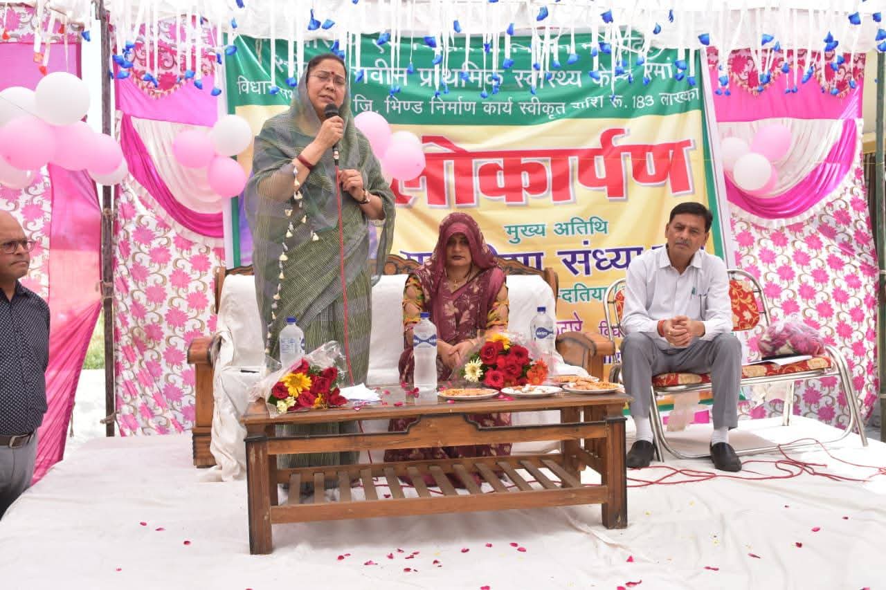 भिण्ड 22 मार्च 2026/ क्षेत्रीय सांसद श्रीमती संध्या राय ने जनपद पंचायत अटेर के ग्राम रमा में 1.83 करोड़ रुपये की लागत से निर्मित प्राथमिक स्वास्थ्य केंद्र का फीता काटकर लोकार्पण किया। इस अवसर पर सीएमएचओ डॉ. जे.एस. यादव, सरपंच रमा, बड़ी संख्या में ग्रामीणों, पंचायत प्रतिनिधियों और स्थानीय अधिकारी उपस्थित रहे।