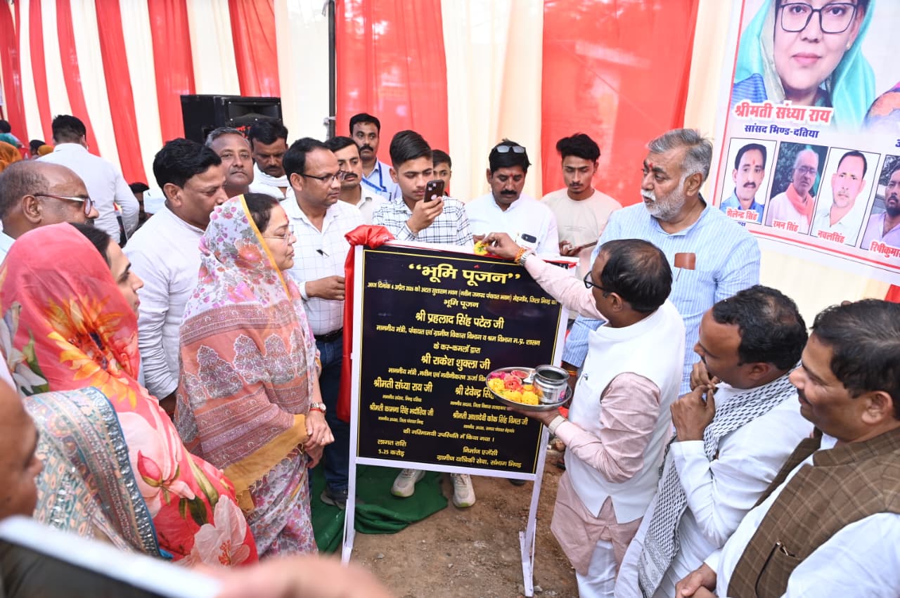 भिण्ड 06 अप्रैल 2026/मध्यप्रदेश शासन के पंचायत एवं ग्रामीण विकास तथा श्रम विभाग के मंत्री एवं जिले के प्रभारी मंत्री श्री प्रहलाद सिंह पटेल ने सोमवार को भिण्ड जिले के प्रवास के दौरान विभिन्न स्थानों पर लगभग 05 करोड़ 62 लाख 50 हजार से अधिक के विकास कार्यों का लोकार्पण एवं भूमिपूजन कर जिलेवासियों को महत्वपूर्ण सौगात दी। मंत्री श्री पटेल ने भिण्ड जिले की जनपद पंचायत मेहगांव में लगभग 5.25 करोड़ के “अटल सुशासन भवन (जनपद पंचायत भवन) मेहगांव का भूमिपूजन तथा जनपद पंचायत भिण्ड की ग्राम पंचायत दबोहा में लगभग 37.50 लाख के अटल ग्राम सेवा सदन (ग्राम पंचायत भवन) दबोहा का लोकार्पण वैदिक मंत्रोच्चार के साथ विधिवत संपन्न किया। जिससे ग्रामीण क्षेत्रों में सामाजिक एवं सामुदायिक गतिविधियों को नया आयाम मिलेगा।
