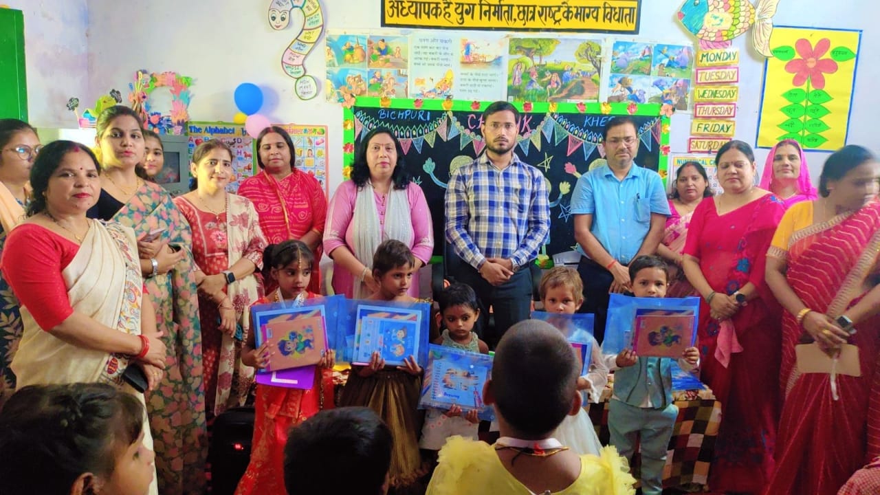 इटावा- प्राथमिक विद्यालय बिचपुरी खेड़ा में चहक कार्यक्रम का आयोजन किया गया चहक कार्यक्रम आंगनबाड़ी व कक्षा 1 के बच्चों से संबंधित होता है इसमें छोटे-छोटे बच्चों ने सुंदर और मनमोहक प्रस्तुतियां देकर सभी का मन मोह लिया कार्यक्रम का प्रारंभ खंड शिक्षा अधिकारी गिरीश कुमार ने दीपक प्रज्वलन के साथ किया कार्यक्रम में एसआरजी संजीव चतुर्वेदी और मीनाक्षी पांडे में उपस्थित रहे कार्यक्रम मैं निपुण बच्चों व शत प्रतिशत उपस्थिति वाले बच्चों को पुरस्कृत किया गया तथा बाल वाटिका के बच्चों को स्टेशनरी वितरण किया अंत में विद्यालय की प्रधान अध्यापिका श्वेता चंदेल ने सभी का आभार प्रस्तुत किया और स्वल्पाहार के साथ कार्यक्रम का समापन किया गया