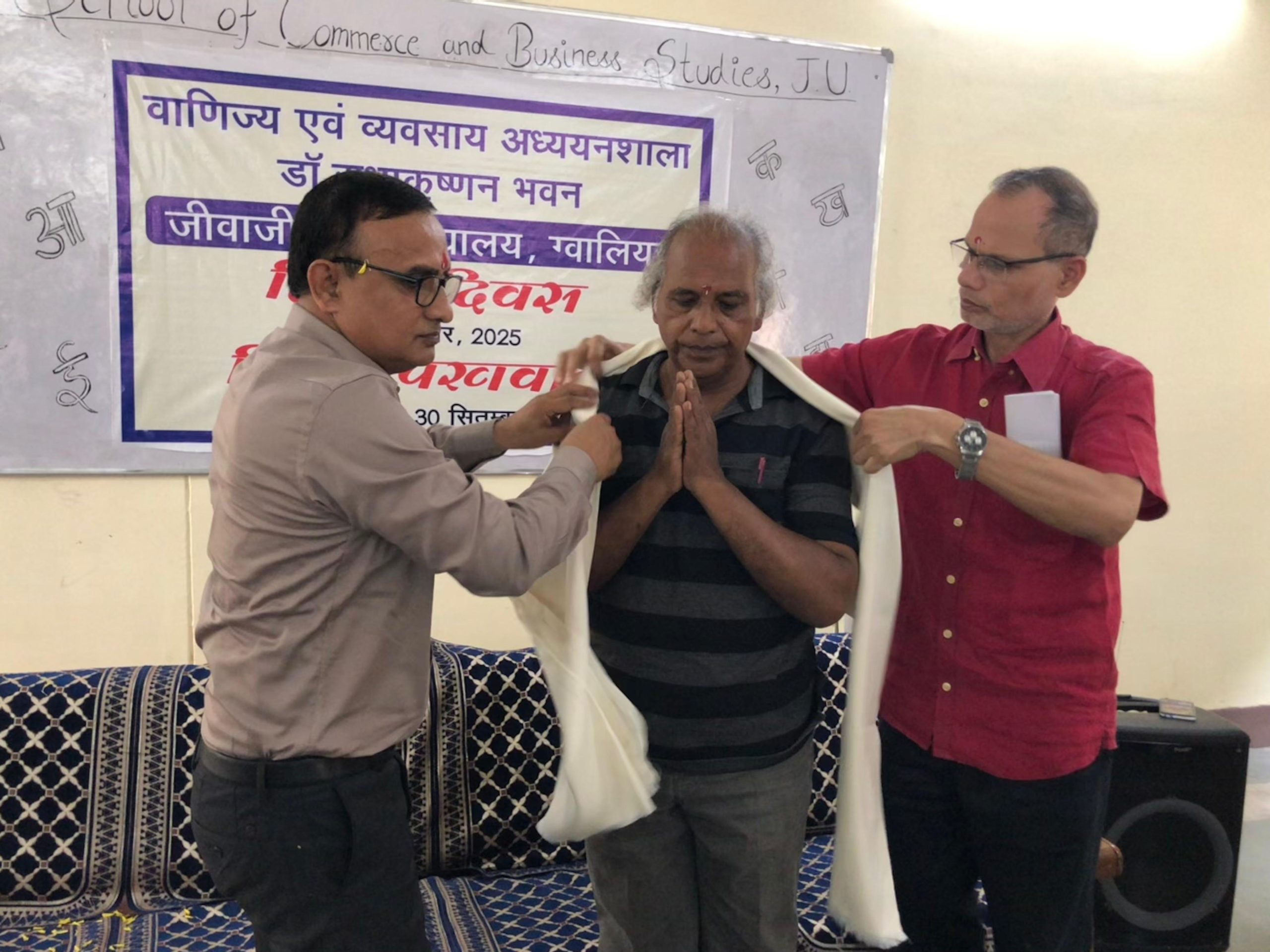 आज भारत दुनिया के अग्रणी देशों में होता। वाणिज्य संकाय के संकायाध्यक्ष प्रो. राजेन्द्र खटीक ने चीन, जापान जैसे देशों का उदाहरण देते हुए कहा कि उन्होने अपनी भाषा नहीं छोड़ी इसलिए आज विकसित हैं। उन्होंने यह भी कहा कि किसी देश की भाषा मिटा दो उसकी संस्कृति अपने आप नष्ट हो जायेगी। मुख्य अतिथि श्री ओ.पी. जैन अधीक्षक, जी.वि.वि. ने अपने उद्बोधन में कहा कि मैंने जब भी किसी शिक्षक को फोन लगाया और यदि बात नहीं हो पायी तो उन शिक्षक ने फोन लगाकर मुझसे बात की। उन्होंने वर्तमान कुलगुरू के निर्णयन क्षमता की तारीफ करते हुए कहा कि उनके पास जाने वाला हर कागज तुरंत वापिस आता है। उन्होने अपने बच्चों का उदाहरण देते हुए कहा कि मेरे बच्चों ने इसी विश्वविद्यालय से शिक्षा प्राप्त की है एंव वह बहुत अच्छी जगह नौकरी कर रहे हैं। यदि आप मेहनत करेंगे तो आप भी लाभान्वित होंगे।