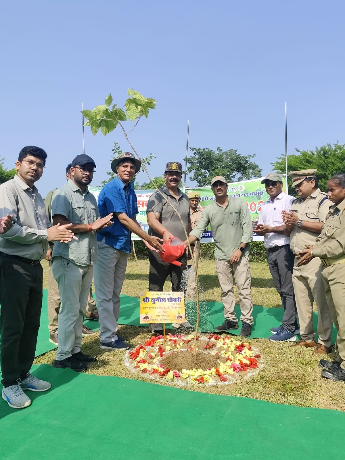 इटावा-प्रधान मुख्य वन संरक्षक और विभागाध्यक्ष, उत्तर प्रदेश सुनील चौधरी द्वारा इटावा सफारी पार्क इटावा का निरीक्षण भ्रमण किया गया। लेपर्ड सफारी में स्वतंत्र विचरण कर रहे लेपर्ड एवं भालू सफारी में भालुओं की चहल कदमी देखकर उनके द्वारा अत्यन्त प्रसन्नता व्यक्त की गई। साथ ही लेपर्ड सफारी में लेपर्ड्स के लिए एक टीले के चारो तरफ मोट जैसी संरचना बनाकर लेपर्ड्स को खुले में रखने हेतु प्रोजेक्ट बनाने के निर्देश दिए। सफारी पार्क के मार्गों का नामकरण करते हुए जगह-जगह साइनेज/बोर्ड लगाने तथा सफारी फेंसिंग की रंगाई पुताई कराने हेतु भी निर्देश उनके द्वारा दिए गए। उत्तर प्रदेश में 16 सितम्बर से 02 अक्टूबर तक सेवा पर्व मनाया जा रहा है। जिसमें पौधारोपण, स्वच्छता एवं अन्य जागरूकता से संबंधित कार्यक्रमों का आयोजन किया जा रहा है। इसी क्रम में सफारी पार्क मे भी सेवा पर्व मनाया जा रहा है। प्रधान मुख्य वन संरक्षक और विभागाध्यक्ष द्वारा एक पेड़ माँ के नाम 2.0 के तहत कृष्ण कदम्ब का एक पौध रोपित किया गया तथा सफारी पार्क प्रशासन द्वारा किए जा रहे कार्यों की सराहना भी की गई। निरीक्षण के समय श्री एनके जानू, मुख्य वन संरक्षक कानपुर मण्डल, इटावा सफारी पार्क के निदेशक डा0 अनिल कुमार पटेल, उप निदेशक, डीएफओ एवं समस्त स्टाफ उपस्थित रहा