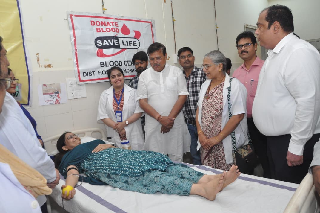 ग्वालियर 22 सितम्बर 2025/ जिले में “स्वस्थ नारी सशक्त परिवार” अभियान के तहत स्वास्थ्य शिविर लगाये जा रहे हैं इसी तारतम्य में सोमवार को सिविल हॉस्पिटल हजीरा में संघन जागरूकता, सीबीसी (CBS) कैंप व रक्त दान शिविर का आयोजन किया गया। शिविर का उदघाटन ऊर्जा मंत्री श्री प्रद्युमन सिंह तोमर ने किया। इस शिविर में 12 लोगों द्वारा रक्त दान किया गया व 57 लोगो की सीबीएस स्क्रीनिंग व टीबी स्क्रीनिंग की गई। सिविल अस्पताल हजीरा के स्वास्थ्य शिविर में सभी लोगों को मंत्री श्री तोमर द्वारा एचआईव्ही एड्स जागरूकता एवं नशा मुक्ति की शपथ दिलाई गई।