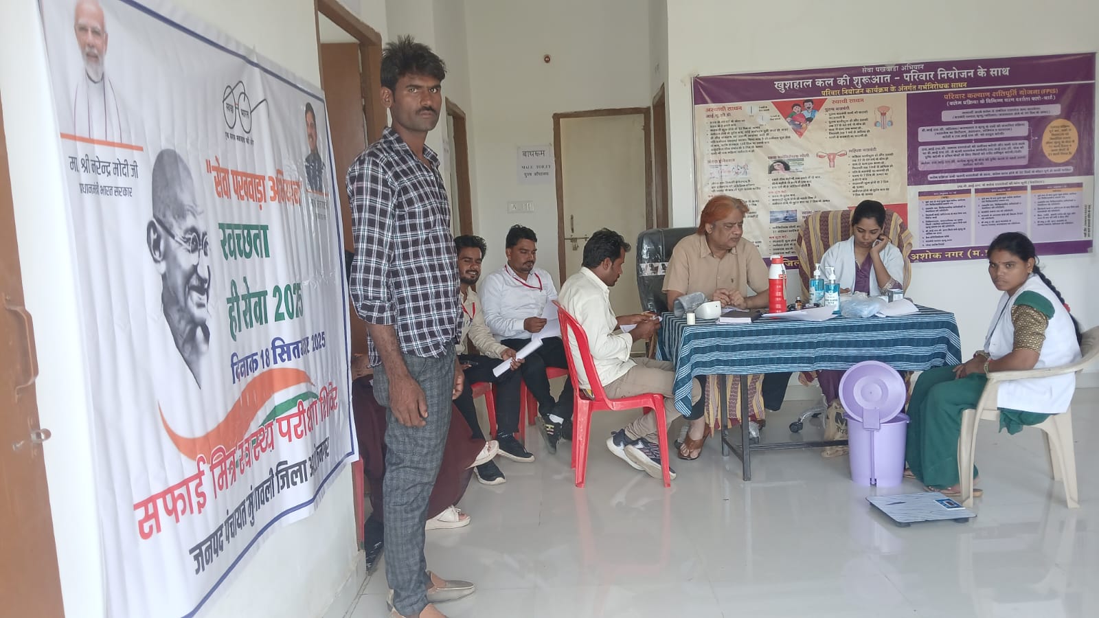 अशोकनगर जिले की ग्राम पंचायत नईसराय में सफाई मित्र स्वास्थ्य परीक्षण शिविर लगाया गया। इस दौरान सफ़ाई मित्रों की नि:शुल्क जांच कर जरूरत के मुताबिक उपचार किया गया। शिविर में 22 सफाई मित्र लाभान्वित हुए।