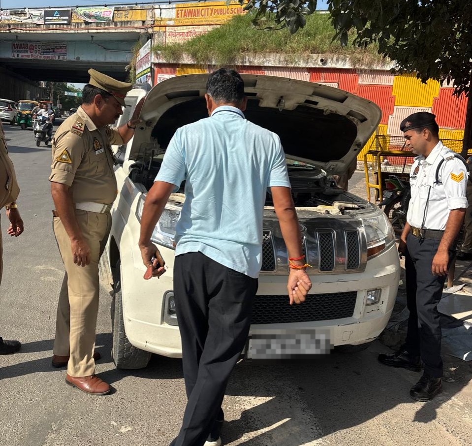 इटावा- उत्तर प्रदेश सरकार द्वारा संचालित मिशन शक्ति 5.0 अभियान के तहत वरिष्ठ पुलिस अधीक्षक इटावा श्री बृजेश कुमार श्रीवास्तव के निर्देशन में प्रभारी यातायात सुबेदार सिंह द्वारा अभियान चलाकर वाहनों पर लगी काली फिल्म, हूटर, लाल-नीली बत्ती, जाति सूचक शब्द, स्टंटबाजी का विशेष चेकिंग अभियान चलाया गया । इस दौरान वाहन स्वामियों को यातायात नियमों के अनुपालन हेतु कड़ी हिदायत दी गई । साथ ही आमजनमानस को यह संदेश दिया गया कि काली फिल्म, हूटर, लाल-नीली बत्ती लगे वाहनों का प्रयोग कानूनन अपराध है ।यातायात पुलिस द्वारा यह अभियान आगे भी लगातार जारी रहेगा, ताकि सुरक्षित एवं अनुशासित यातायात व्यवस्था सुनिश्चित की जा सके।