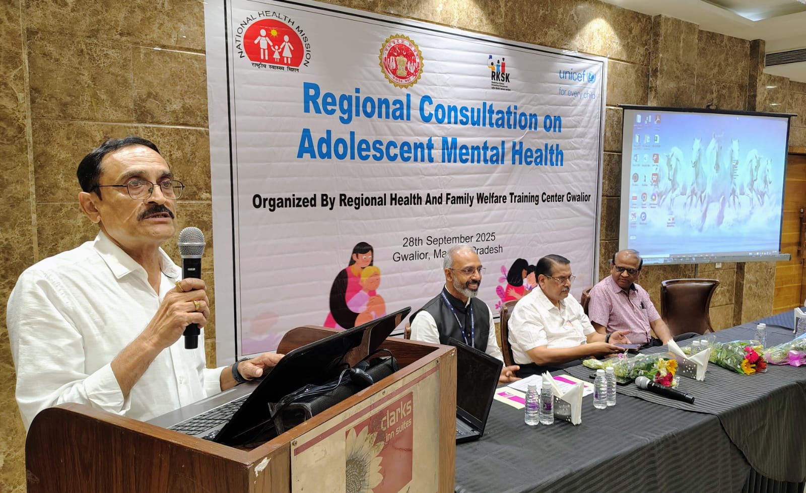 ग्वालियर – क्षेत्रीय स्वास्थ्य एवं परिवार कल्याण प्रशिक्षण केन्द्र ग्वालियर के प्राचार्य डॉ.पी के. जैन से प्राप्त जानकारी के अनुसार यूनिसेफ के सहयोग से क्षेत्रीय किशोरावस्था मानसिक स्वास्थ्य विषय पर कार्यशाला का आयोजन होटल क्लार्क इन ग्वालियर में 28 सितम्बर 2025 को किया गया , कार्यशाला का शुभारंभ डॉ. सी.पी. बंसल, डॉ. अजय गोड तथा डॉ. प्रशांत कुमार हेल्थ स्पेशलिस्ट यूनीसेफ मध्यप्रदेश द्वारा दीप प्रज्वलित कर किया गया ।