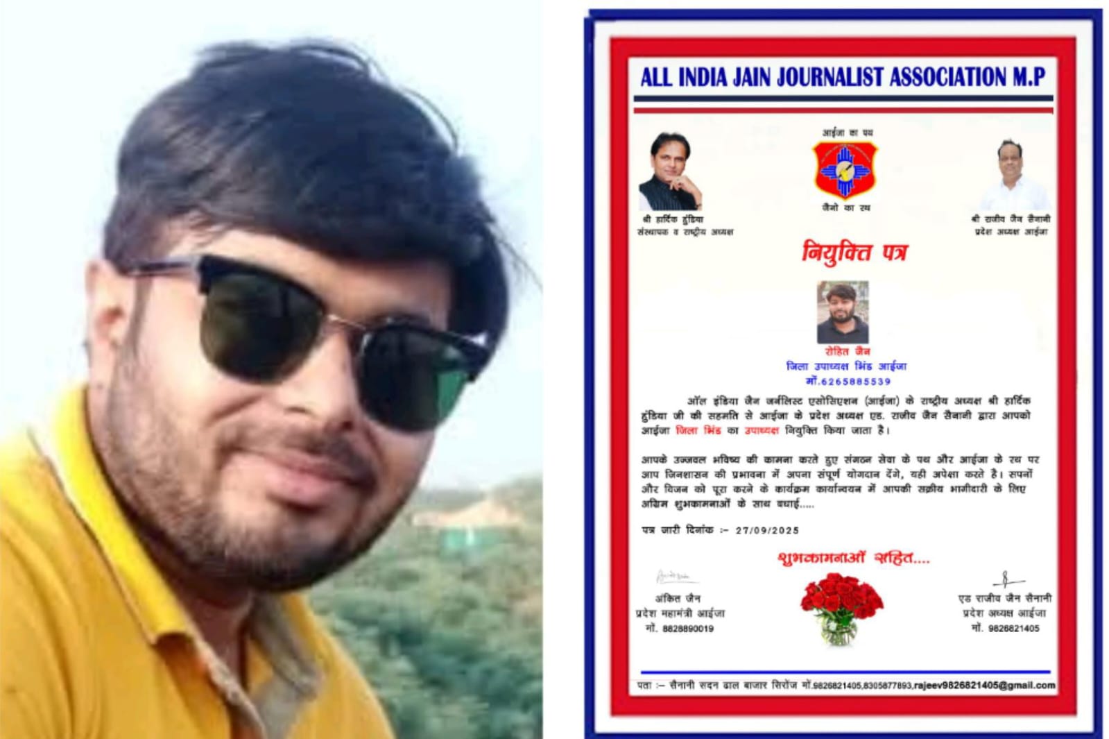ऑल इंडिया जैन जर्नलिस्ट एसोशिएशन के रोहित जैन बने भिंड जिला उपाध्यक्ष
