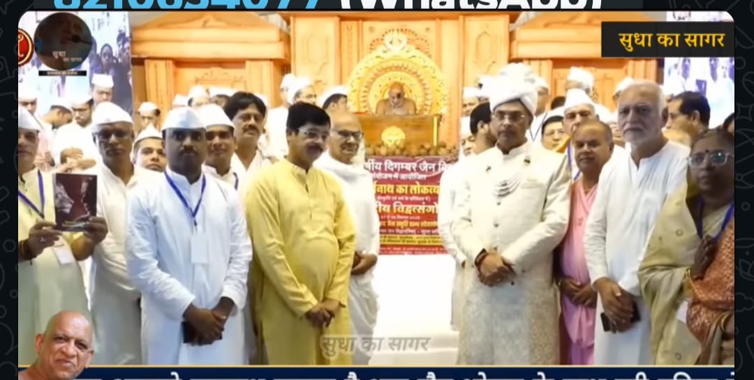 इंदौर-जन जन के आराध्य श्रमण संस्कृति के महामहिम परम पूज्य गुरूदेव संत शिरोमणि श्री १०८ विद्यासागर सागर जी महामुनिराज के परम प्रभावक, आज्ञाकारी प्रिय शिष्य जन जन के हृदय सम्राट आराध्य गुरूदेव मुनि श्री १०८ सुधा सागर जी महामुनिराज जी को आज सोमवार दिनांक 29/09/25 अशोकनगर में आयोजित वृहत राष्ट्रीय विद्वत संगोष्ठी में अखिल भारतीय विद्वत परिषद के तत्वावधान में 80 से अधिक विद्वान एवं विदुषियों के द्वारा जगत पुज्य मुनि श्री सुधा सागर जी को श्रमण शिरोमणि के नाम से उपाधि से अलंकृत किया गया । धर्म समाज प्रचारक राजेश जैन दद्दू ने बताया कि परम पूज्य गुरुदेव ने यह उपाधि के लिए बोला की श्रमण को मैं रख लेता हूं और शिरोमणि आप लोग अपने पास रख लो। धन्य है गुरु देव गुरु देव ने अपनी मंगल देशना में हजारों की संख्या में समाज जन को संबोधित करते हुए कहा कि