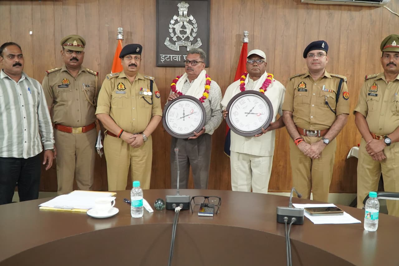 इटावा -पुलिस विभाग मे सेवा देकर अपनी अधिवर्षता आयु पूर्ण कर सेवानिवृत्त हुए 2 उपनिरीक्षक को वरिष्ठ पुलिस अधीक्षक बृजेश कुमार श्रीवास्तव द्वारा स्मृति चिन्ह, घड़ी, प्रशस्ति पत्र व शॉल भेंट कर भावभीनी विदाई देकर उज्ज्वल भविष्य की कामना की गई एवं भविष्य मे किसी भी प्रकार की कोई सहायता होने पर निसंकोच संपर्क करने के लियो आश्वस्त किया गया । इस दौरान अपर पुलिस अधीक्षक अपराध सुबोध गौतम एवं पुलिस के अन्य अधि0/कर्मचारीगण मौजूद रहें ।