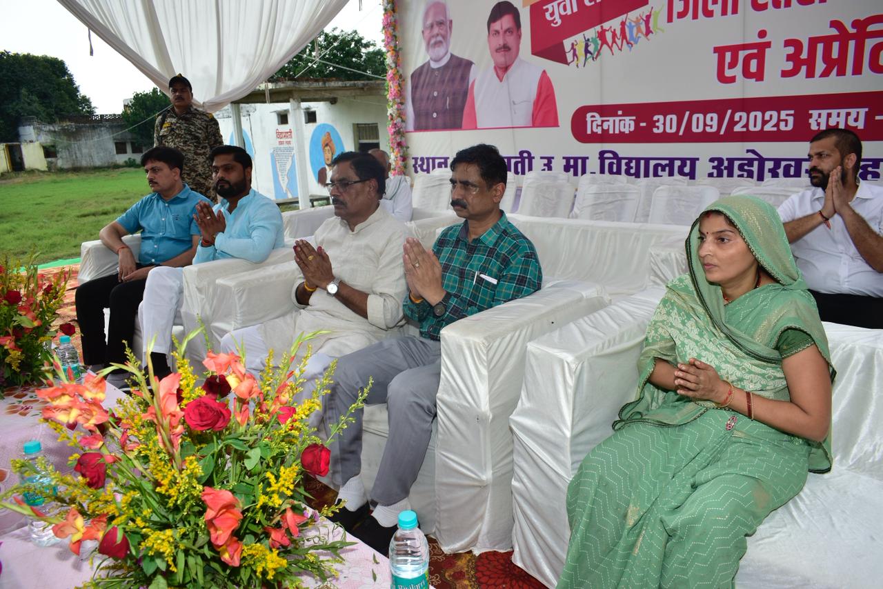 भिण्ड 30 सितम्बर 2025/ मध्यप्रदेश शासन के निर्देशानुसार जिला प्रशासन भिण्ड एवं जिला रोजगार कार्यालय भिण्ड आई.टी.आई भिण्ड तथा जिला व्यापार एवं उद्योग केन्द्र भिण्ड के द्वारा युवा संगम रोजगार मेला अप्रेंटिस मेला तथा स्वरोजगार मेला का आयोजन सरस्वती उ.मा. विद्यालय परिसर अड़ोखर तहसील मेहगाँव में किया गया।