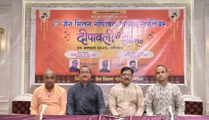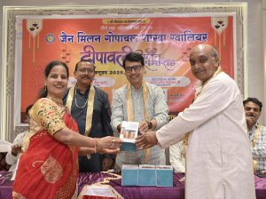 ग्वालियर। जैन मिलन गोपाचल शाखा ग्वालियर का दीपावली मिलन समारोह 25 अक्टूबर 2025, शनिवार को संपन्न हुआ। कार्यक्रम के मुख्य अतिथि अतिवीर राजेश जैन बंटी राष्ट्रीय प्रचार-प्रसार अध्यक्ष, अतिविशिष्ट अतिथि क्षेत्रीय अध्यक्ष महेन्द्र जैन क्षेत्रीय मंत्री वीर कमलेश जी जैन क्षेत्रीय संयोजक संजीव जैन विशेष रूप से उपस्थित थे। कार्यक्रम की शुरुआत भगवान महावीर के चित्र अनावरण और दीप प्रज्ज्वलन के साथ हुई। मंगलाचरण की प्रस्तुति अनाया जैन ने दी। इस अवसर पर जैन मिलन गोपाचल शाखा के सभी वीर एवं वीरांगनाएं सपरिवार उपस्थित थे