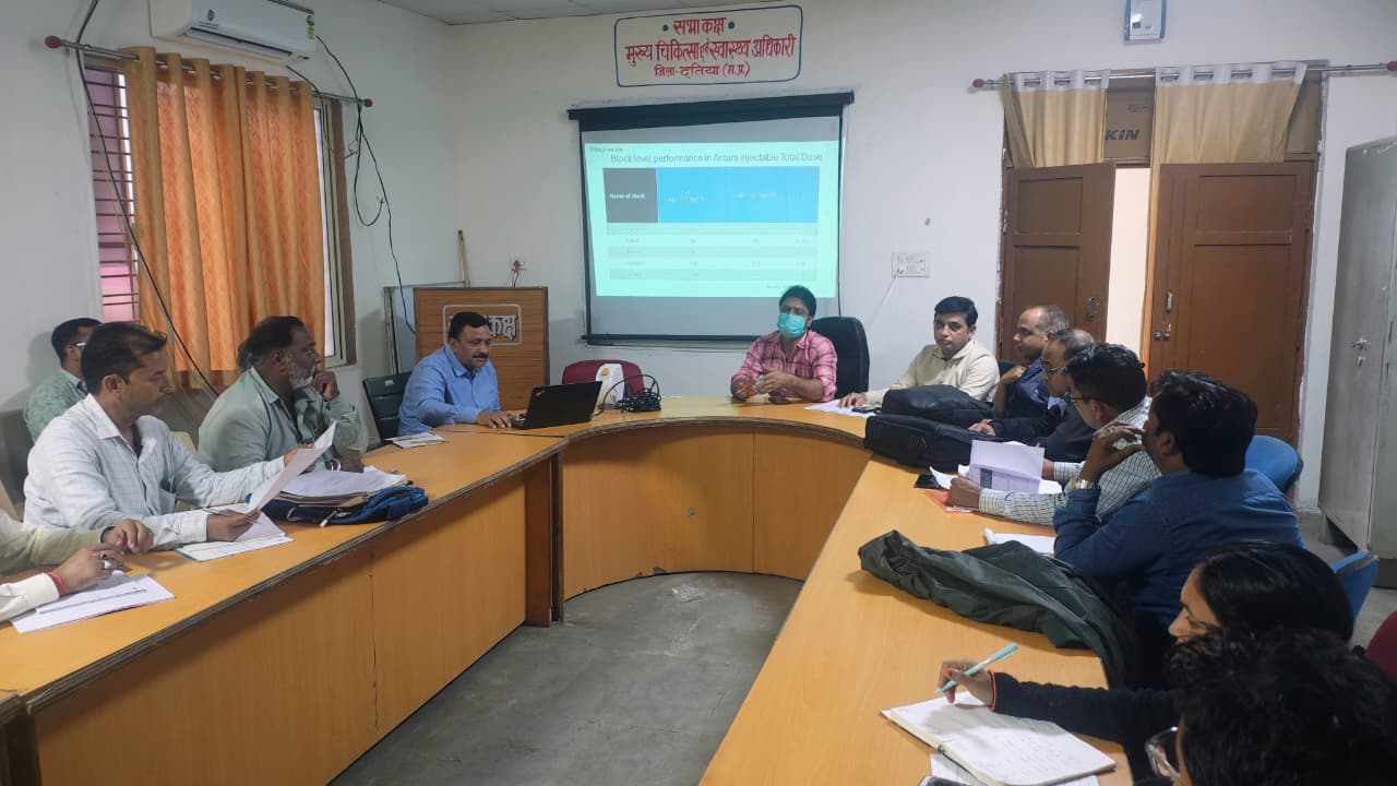 दतिया।मुख्य चिकित्सा एवं स्वास्थ्य अधिकारी दतिया डॉ. बी.के. वर्मा के मार्गदर्शन में शुक्रवार सीएमएचओ कार्यालय में परिवार नियोजन की समीक्षा बैठक का आयोजन किया गया। जिसमें जिले से DHO-2, DPM, डीसीएम, M&E, एपीएम, सभी ब्लॉक के बीएमओ, बीसीएम, BEE एवं स्टोर कीपर उपस्थित रहे।मीटिंग में अप्रैल से सितंबर तक के कार्य की ब्लॉक समीक्षा की गई। अंतरा इंजेक्शन एवं PPIUCD की कम उपलब्धि पर सीएमएचओ सर ने सभी ब्लॉक अधिकारियों को साप्ताहिक समीक्षा करने के लिए निर्देशित किया। ESB-1 एवं ESB-2 में उपलब्धि कम कम होने पर सभी ब्लॉक को बढ़ाने के लिए निर्देशित किया गया। महिला नसबंदी के लिए उचित व्यवस्था करने एवं ओटी को स्वच्छ रखने के लिए निर्देशित किया गया। कैंप लगाने के लिए सलाह दी