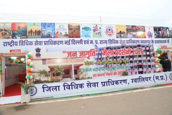 ग्वालियर 24 जनवरी 2026/ राष्ट्रीय विधिक सेवा प्राधिकरण एवं राज्य विधिक सेवा प्राधिकरण के तत्वावधान में ग्वालियर व्यापार मेला में जिला विधिक सेवा प्राधिकरण ग्वालियर की प्रदर्शनी “जन- जागृति मेला प्रदर्शनी 2026” लगाई गई है। उच्च न्यायालय खंडपीठ ग्वालियर के प्रशासनिक न्यायाधिपति न्यायमूर्ति श्री आनंद पाठक ने विधिक जागरूकता के उद्देश्य से लगाई गई इस…